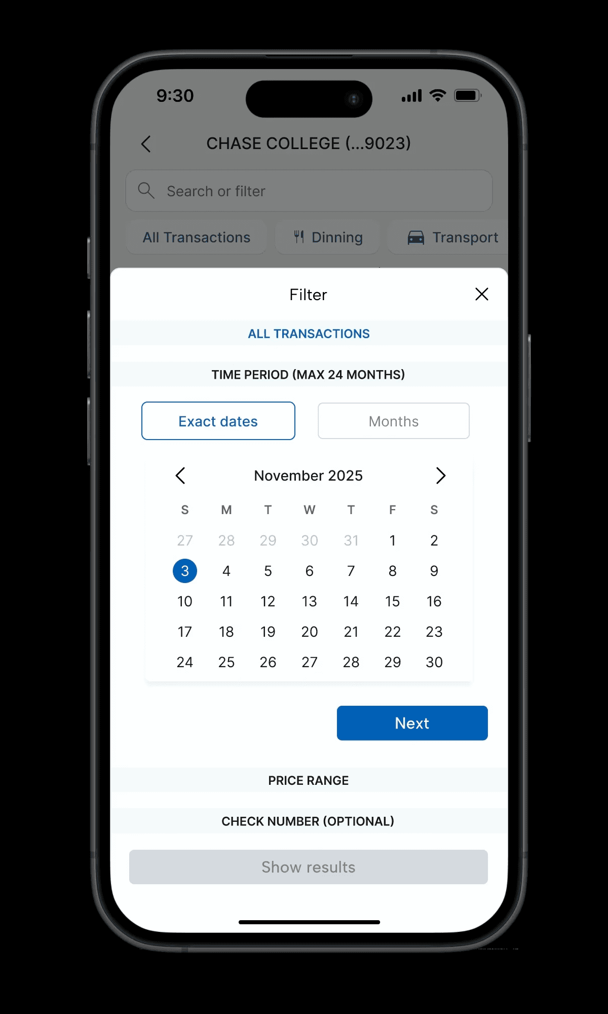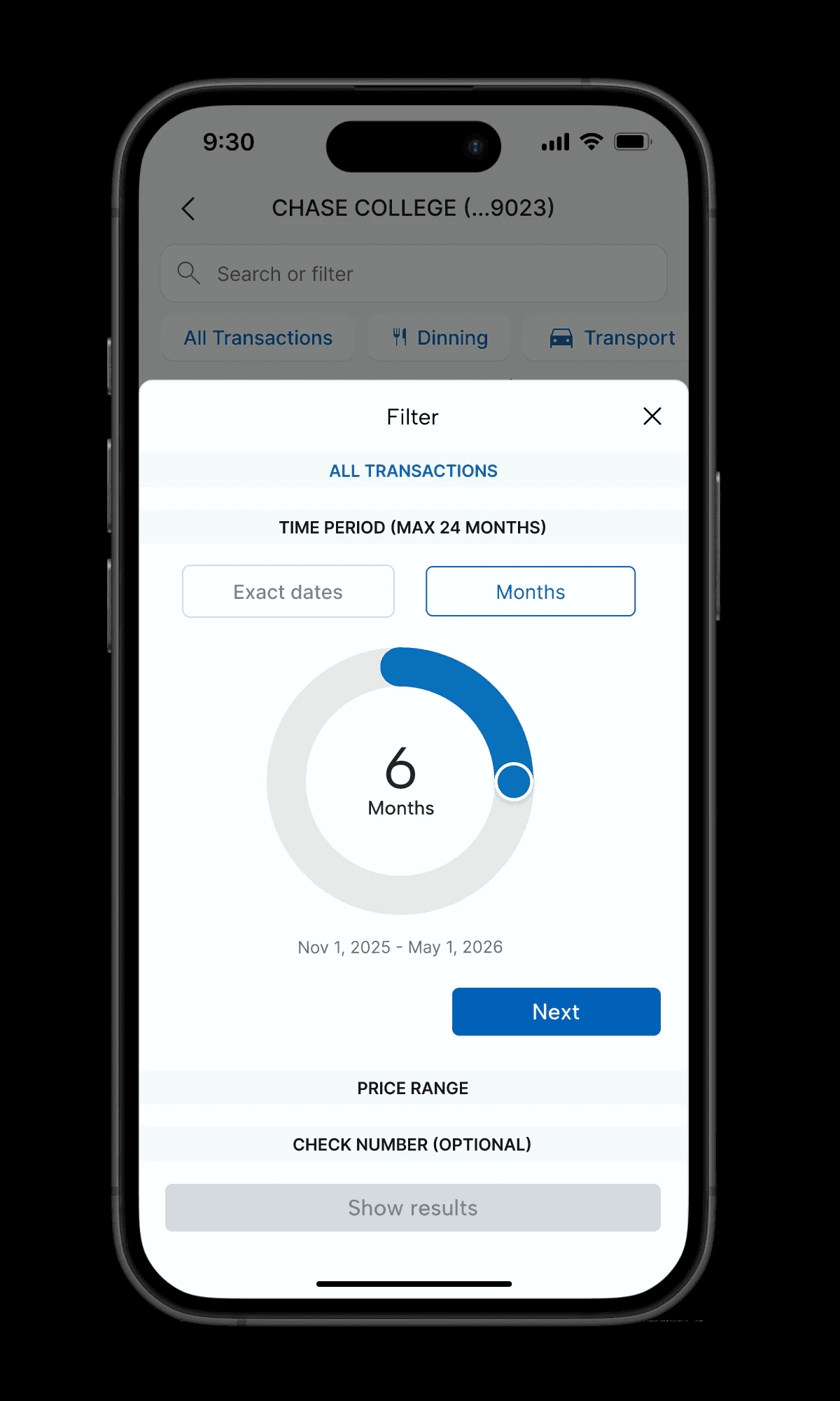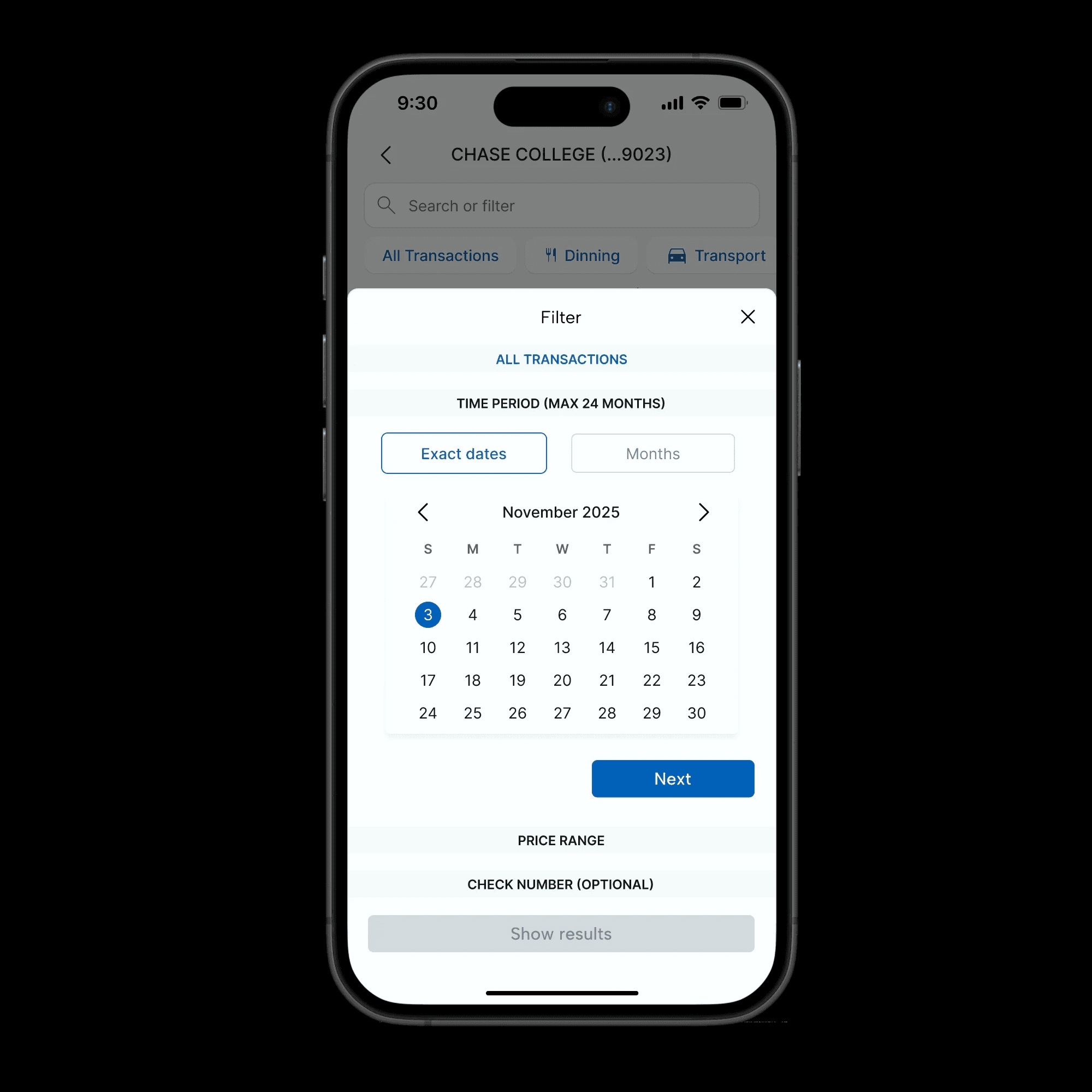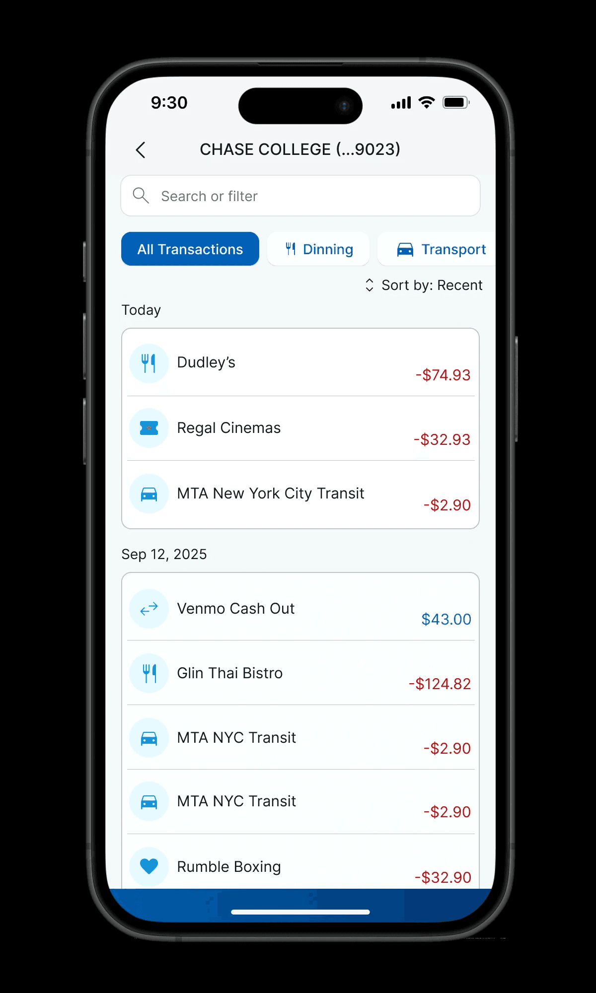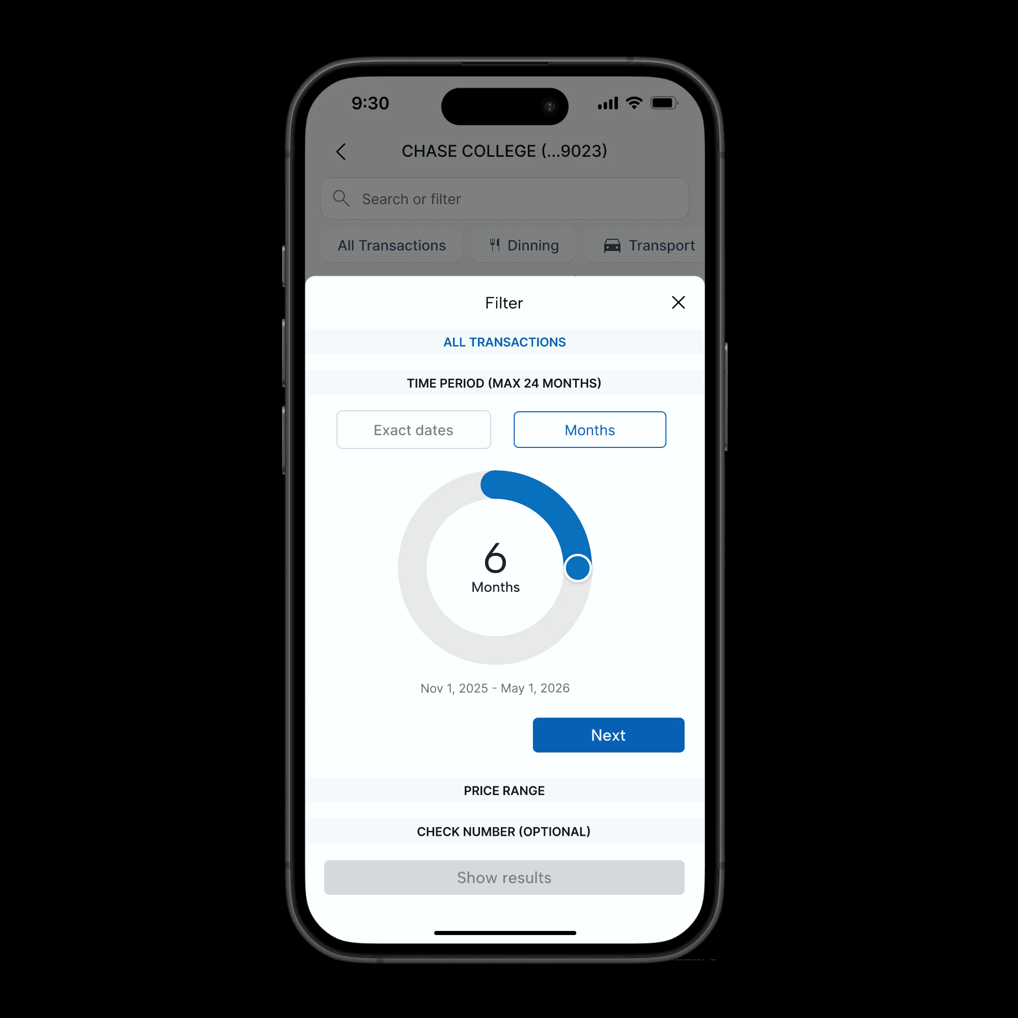 Chase's current transaction filtering system requires multiple steps, making it challenging for users to quickly find specific transactions. The problem focused on was the usability of this action and making it a more seamless experience.